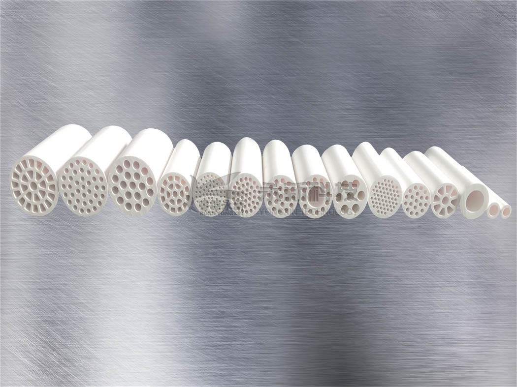 陶瓷膜管是以无机陶瓷材料经特殊工艺制备而形成的非对称膜。管式陶瓷膜管壁密布微孔,在压力作用下,原料液在膜管内或膜外侧流动,小分子物质(或液体)透过膜,大分子物质(或固体)被膜截留,从而达到分离、浓缩、纯化和环保等目的。陶瓷膜具有分离效率高、效果稳定、化学稳定性好、耐酸碱、耐有机溶剂、耐菌、耐高温、抗污染、机械强度高、再生性能好、分离过程简单、能耗低、操作维护简便、使用寿命长等众多优势,已经成功应用于食品、饮料、植(药)物深加工、生物医药、发酵、精细化工等众多领域,可用于工艺过程中的分离、澄清、纯化、浓缩、除菌、除盐等。